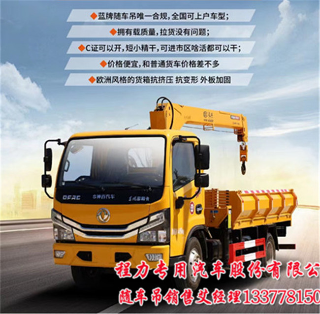 東風多利卡D6藍牌隨車吊上裝長興4噸3節直臂吊機,舉升高度9.5米,工作半徑7.5米。上裝長興4噸4節直臂吊機,舉升高度12米,工作半徑10米。這款車子出廠都是整車,一切手續按公告手產,