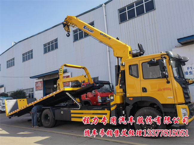 五環(huán)大力神8噸東風(fēng)華神T5一拖二清障車(chē)隨車(chē)吊8噸施救車(chē)帶吊銷(xiāo)售電話(huà)及吊機(jī)配件,這是一款可吊貨拉貨及清障為一體多功能隨車(chē)吊,但主要還是以施救為主的隨車(chē)吊,后面可拖小車(chē),上面可背小車(chē),吊機(jī)可配8噸,大臂頂端可加一個(gè)吊藍(lán),可裝廣告牌及電力用,可拉一些大件貨-中轉(zhuǎn)也行,整車(chē)價(jià)格一律按成本核算,8噸大力神清障車(chē)帶吊的整車(chē)價(jià)格在31W+,當(dāng)然用戶(hù)可選其它品牌吊機(jī)徐工,三一,程力及長(zhǎng)興等等。其價(jià)格都不同,請(qǐng)業(yè)電咨詢(xún)。