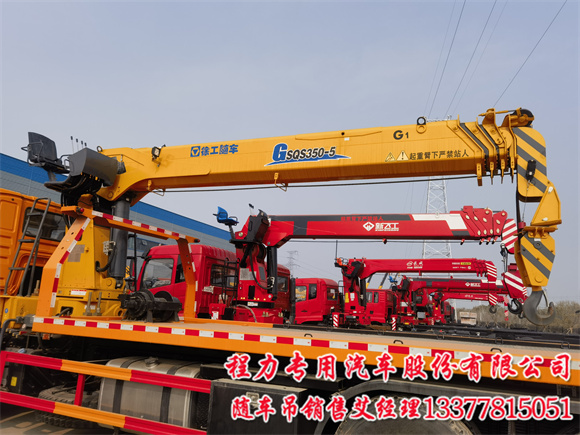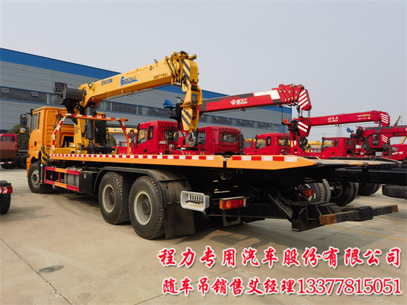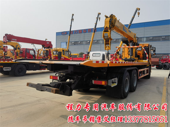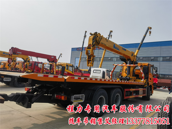 陜汽后雙橋隨車吊一拖二清障車配吊分析:一般來說配12噸各大品牌吊機-是常配,徐工12噸K型,G四節和G五節臂新款吊機,也可配石煤,三一,大力神,宏昌天馬,程力本部吊機等,大臂長度不同,整車價格不同,加裝遙控器,加裝小鉤。